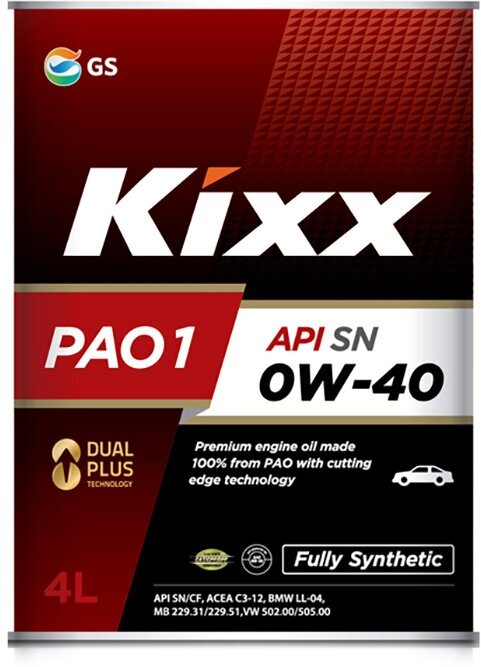 Kixx Масло Моторное 0W40 Kixx 4Л Синтетика Pao 1 Api Sn Acea A3/B4/C3