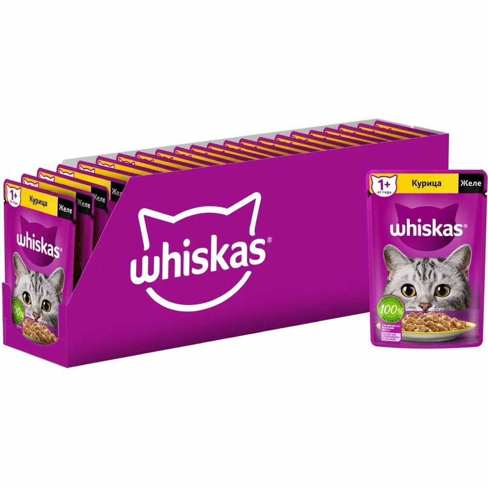 Влажный корм WHISKAS для кошек, желе с курицей, 28 шт по 75г