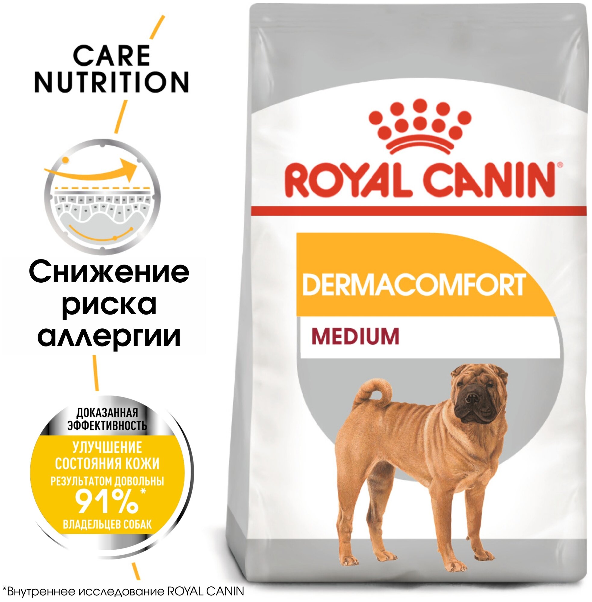 Сухой корм Royal Canin Medium Dermacomfort (Медиум Дермакомфорт) для собак средних размеров, при раздражениях и зуде кожи от 1 г. до 10 лет, 3 кг