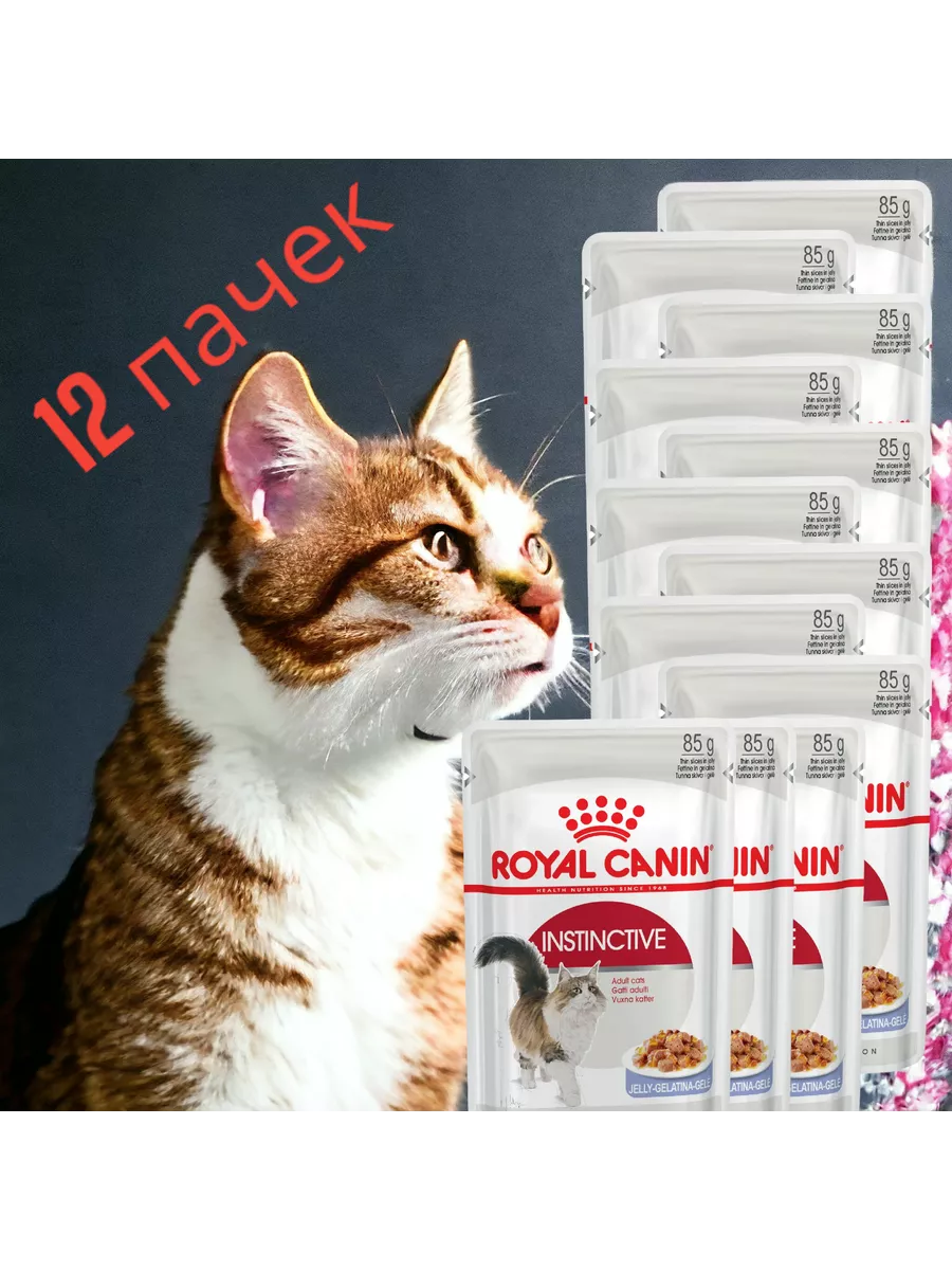 Влажный корм для кошек Royal Canin INSTINCTIVE (инстинктив) Мелкие кусочки в желе исключительной аппетитности для взрослых кошек в возрасте от 1 года до 7 лет 85 г. х 24 шт