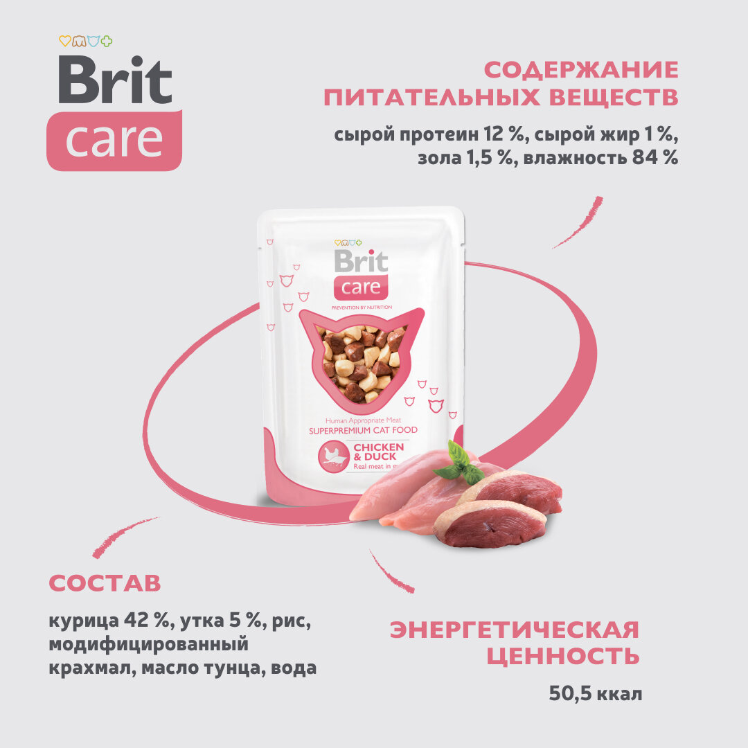 Brit Паучи для взрослых кошек Care с курицей и уткой (Chicken Duck) 100121 | Chicken Duck, 0,08 кг (2 шт)