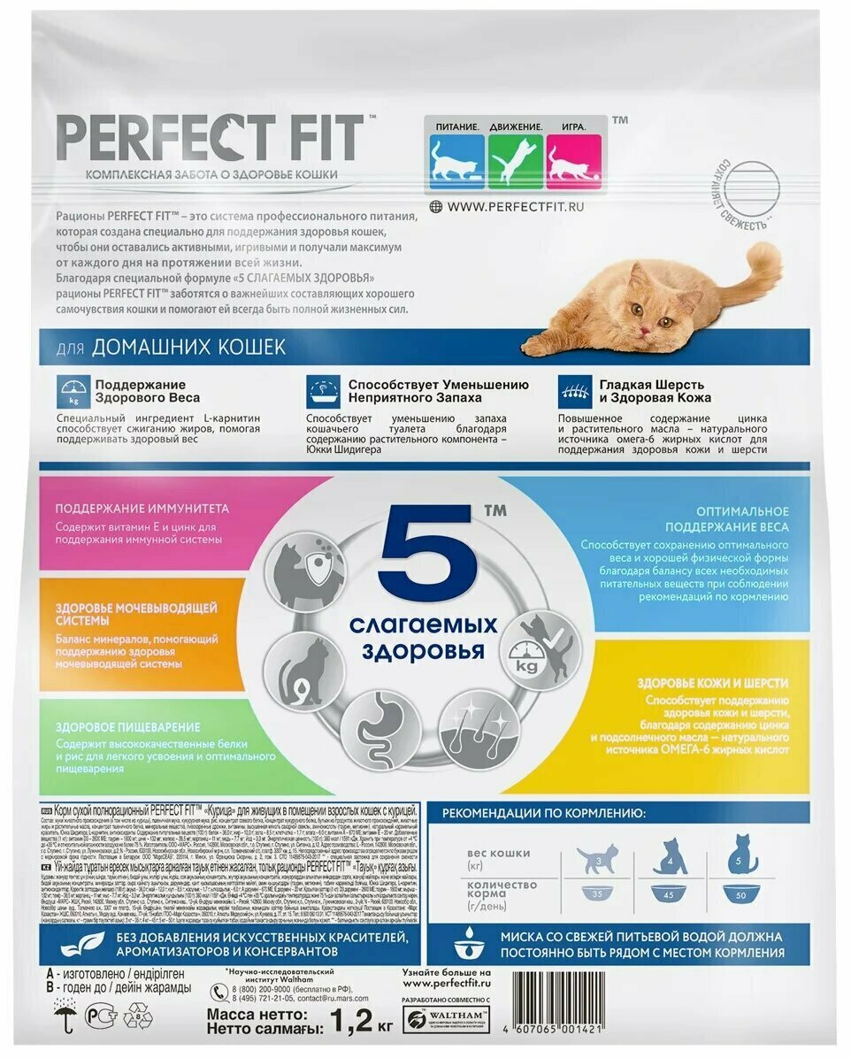 Корм сухой Perfect Fit для взрослых домашних кошек всех пород, с курицей, 1.2 кг