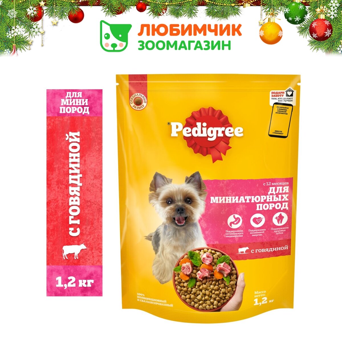 Корм сухой для взрослых собак PEDIGREE с говядиной, для миниатюрных пород, полнорационный, 1,2кг