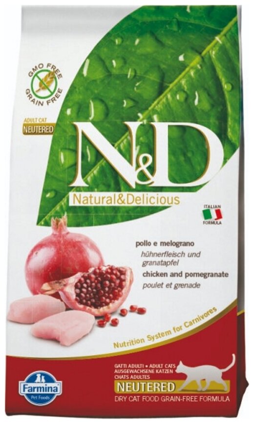 Корм для кошек сухой N&D Prime / Фармина Cat Chicken & Pomegranate Neutered Adult беззерновой для взрослых стерилизованных животных всех пород,