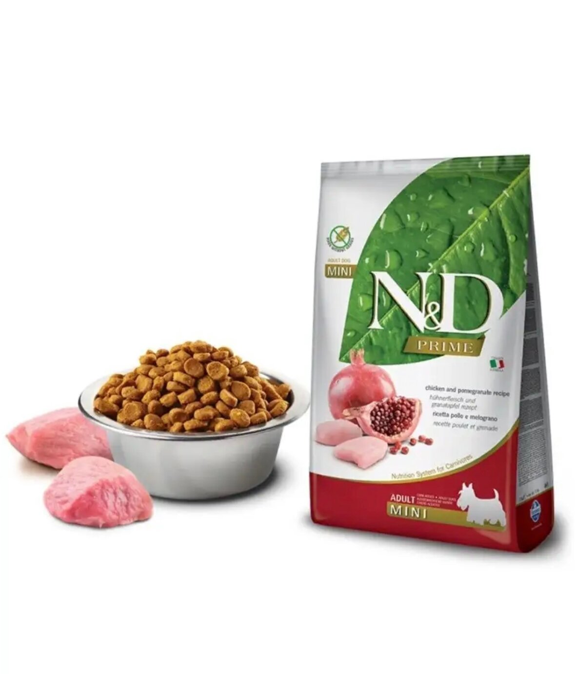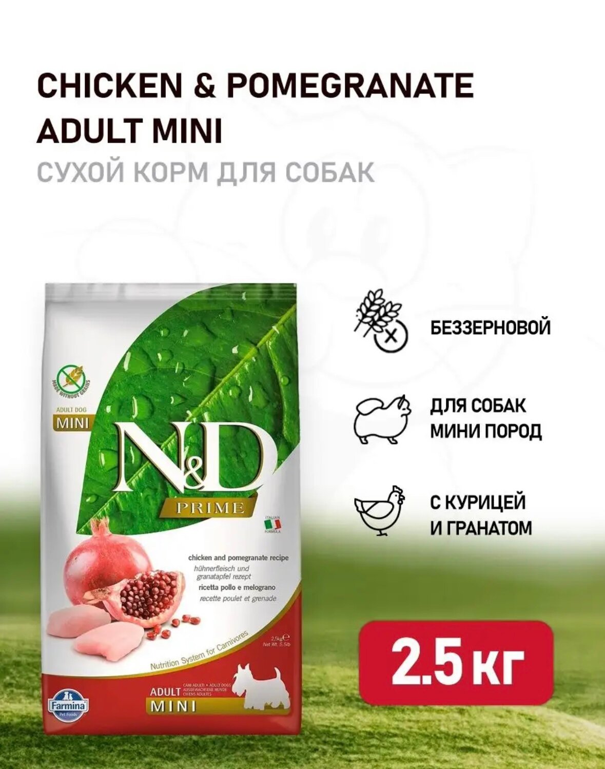 Купить FARMINA DOG N&D PRIME ADULT MINI CHICKEN & POMEGRANATE беззерновой для взрослых собак маленьких пород с курицей и гранатом (2,5 кг)