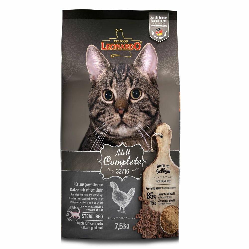 Купить Сухой корм Leonardo Adult Complete 32/16 для взрослых кошек - Вес 7.5 кг