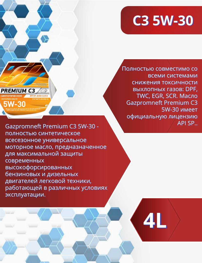 Моторное масло Gazpromneft Premium C3 5W-30 синтетическое, 4 л
