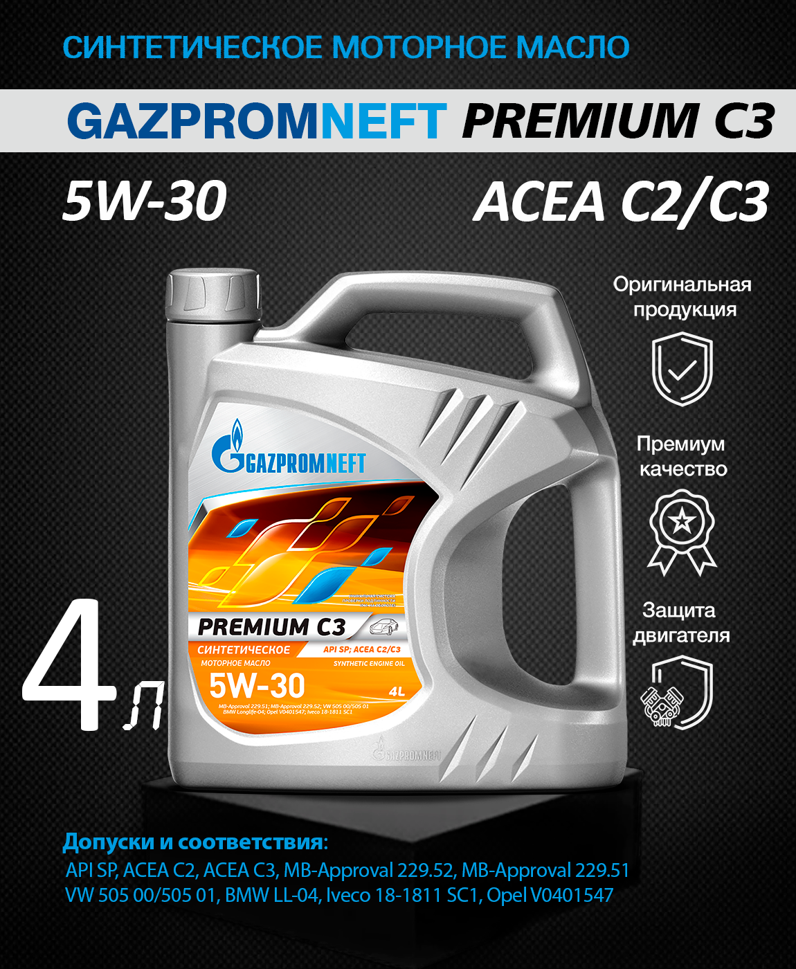 Gazpromneft 5W30 4L Premium C3 , (3) Масло Мотор. Синтетич.