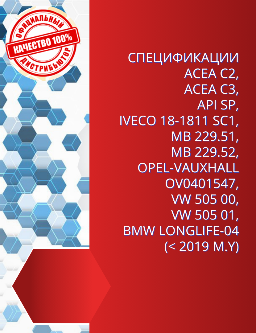 | Допуски OEM | BMW Longlife-04 / MB 229.51 / MB 229.52 / Opel OV0401547 / VW 505.00 / VW 505.01 |