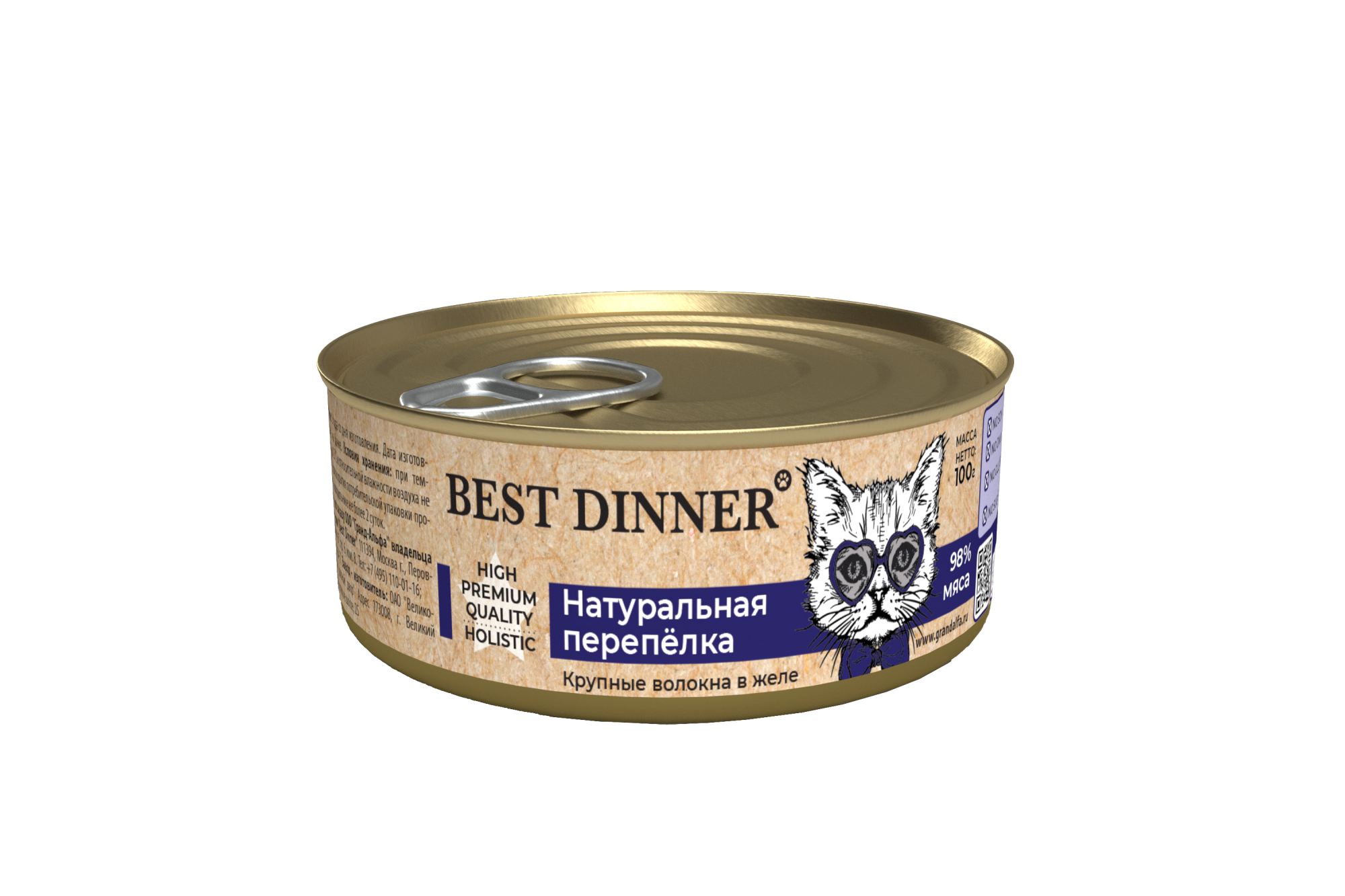 Best Dinner High Premium влажный корм для взрослых кошек с натуральной перепелкой, в консервах - 100 г х 12 шт