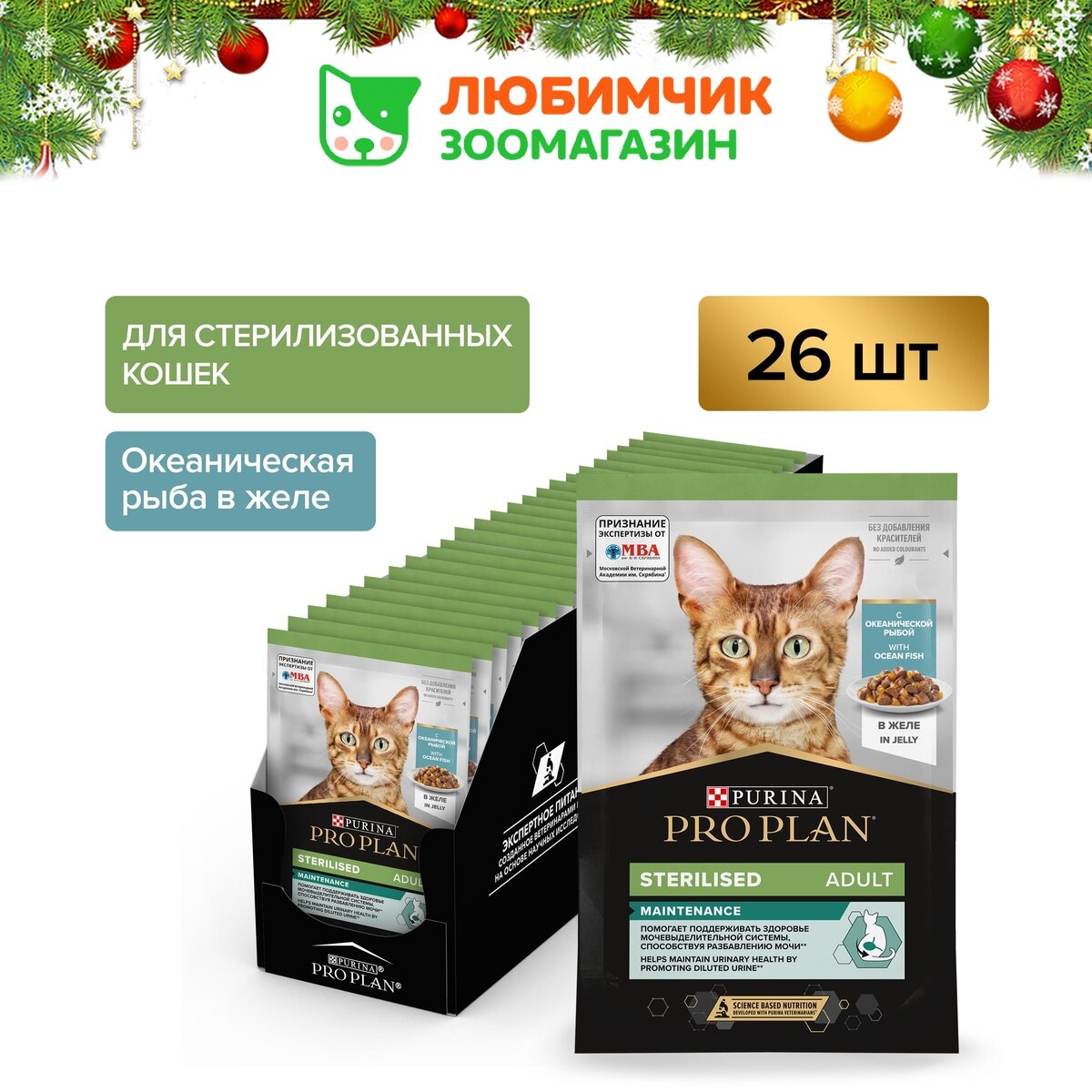 PRO PLAN CAT ADULT STERILISED OCEAN FISH для взрослых кастрированных котов и стерилизованных кошек с рыбой в желе (85 гр х 26 шт)