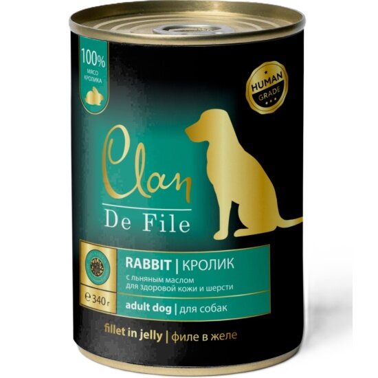 Влажный корм для собак CLAN de File, беззерновой, кролик 340 г