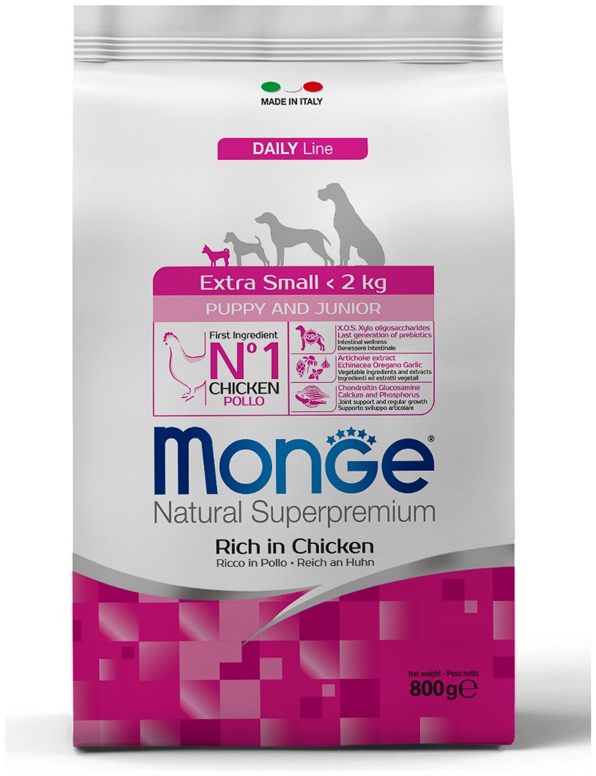 Сухой корм Monge Dog Extra Small для щенков миниатюрных пород, с курицей, 800 г