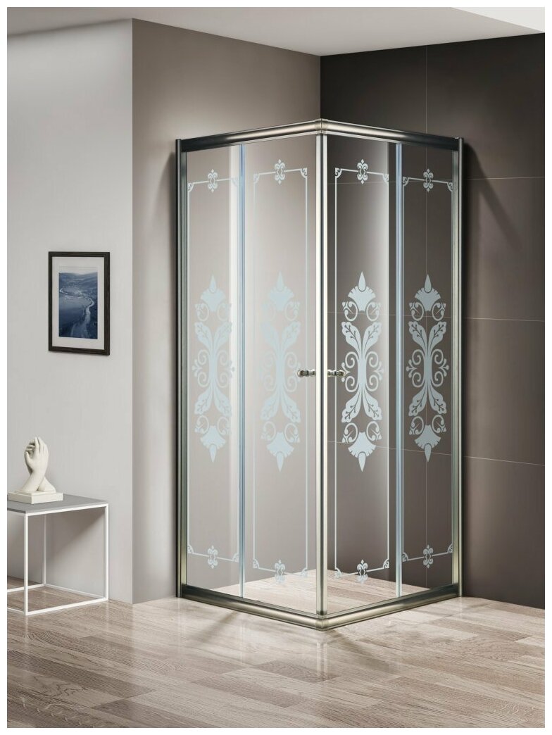 Cezares Душевой уголок Cezares Giubileo A-2 90x90 GIUBILEO-A-2-90-SCORREVOLE-CP-Br профиль Бронза стекло прозрачное с матовым принтом