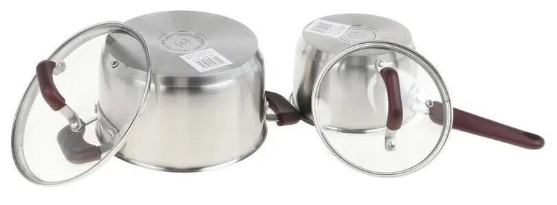 | Дополнительная информация | материал крышек: стекло; материал ручек: бакелит; многослойное дно; мерная шкала: есть; диаметр ковша: 16 см; диаметр кастрюль: 18 см, 20 см, 24 см |