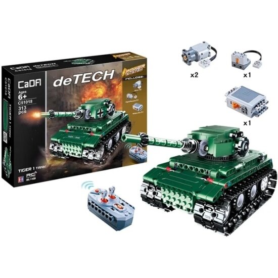 Конструктор Double E Cada Technics, Танк Tiger 1, 313 деталей, пульт управления - C51018W