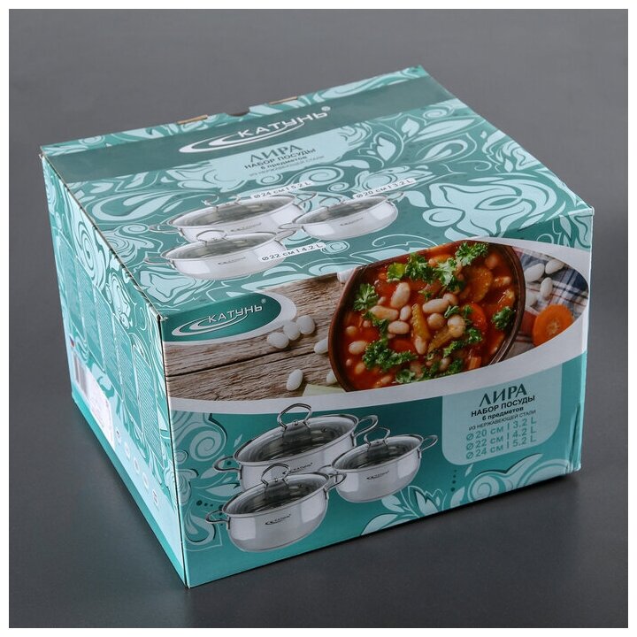 Катунь Лира КТ-СР-003, Набор кастрюль 6 предметов (3,2л; 4,2л; 5,2л с крышками)