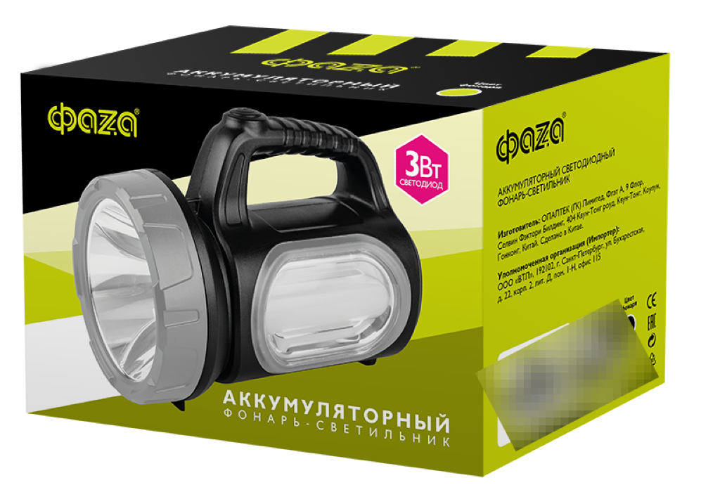 Аккумуляторный фонарь LED Фаzа, 2в1 AccuF7-L3W/L10gn, желтый 192х132х108 мм