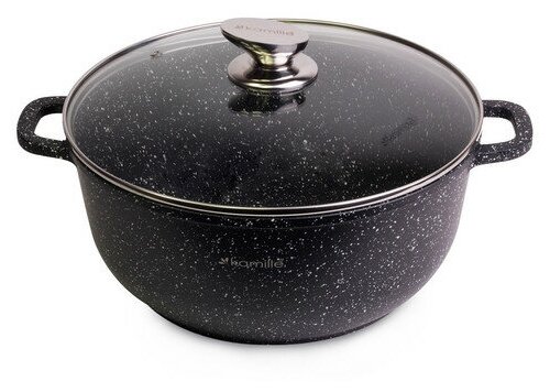 Кастрюля 28*12,5cm из литого алюминия с антипригарным покрытием ''чёрный мрамор'' и стеклянной крышкой Kamille 4406