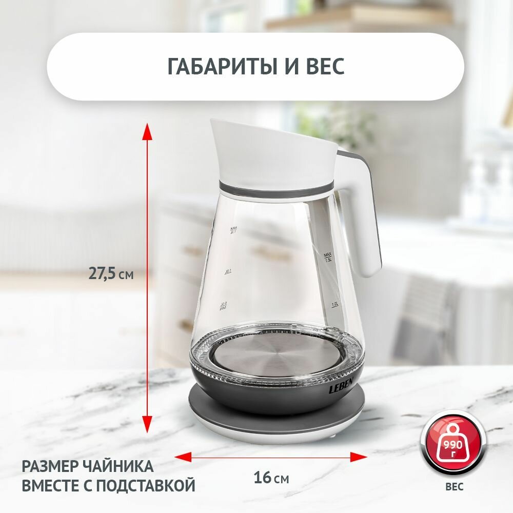Чайник электрический LEBEN 291-060 1,5л стекло белый