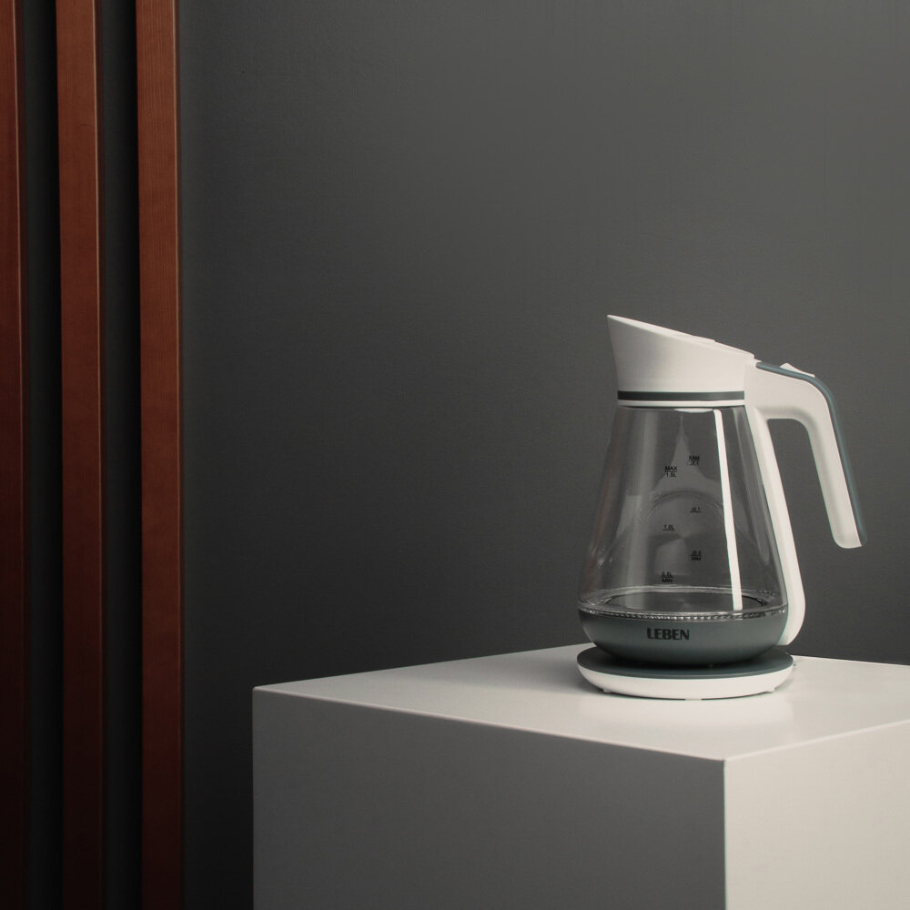 LEBEN Чайник электрический 1,5л, 1850Вт, скрытый нагр.элемент, автооткл., стекло-кувшин