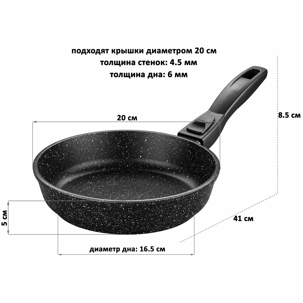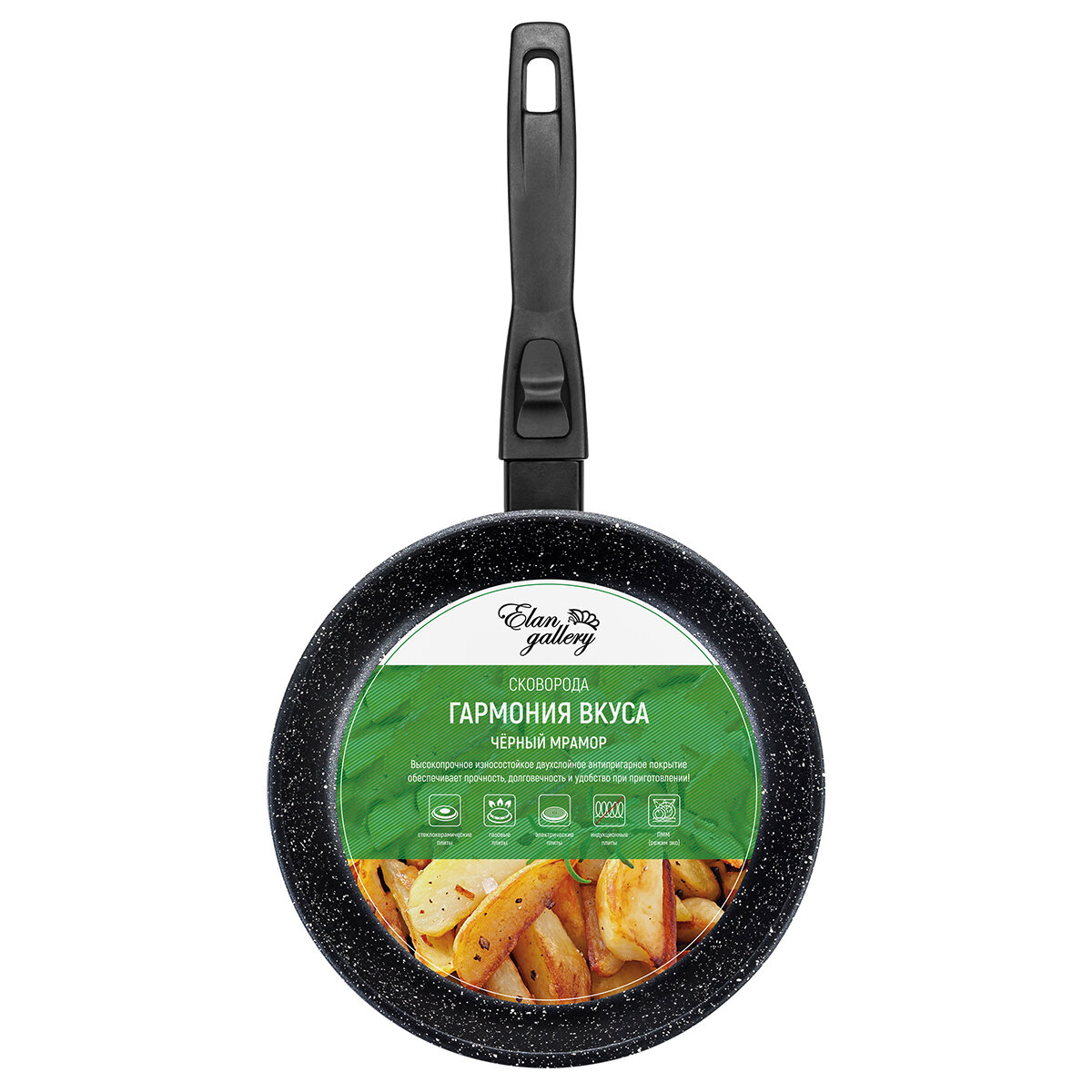 Сковорода глубокая 20 см гармония вкуса "Черный мрамор" без крышки, с/р, 41*21*8,5 см интересное: