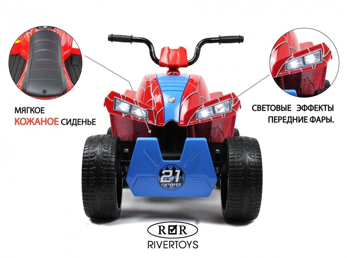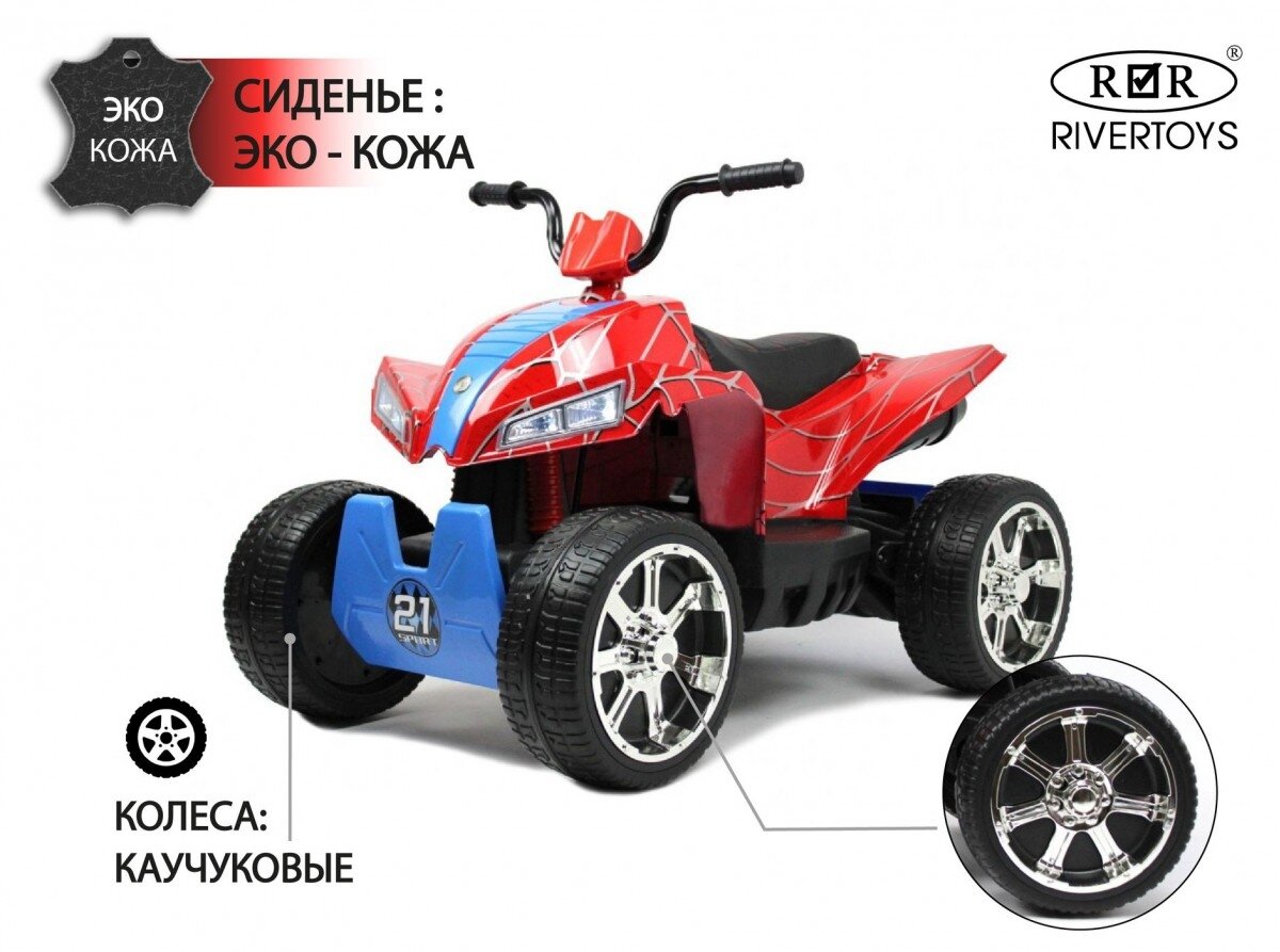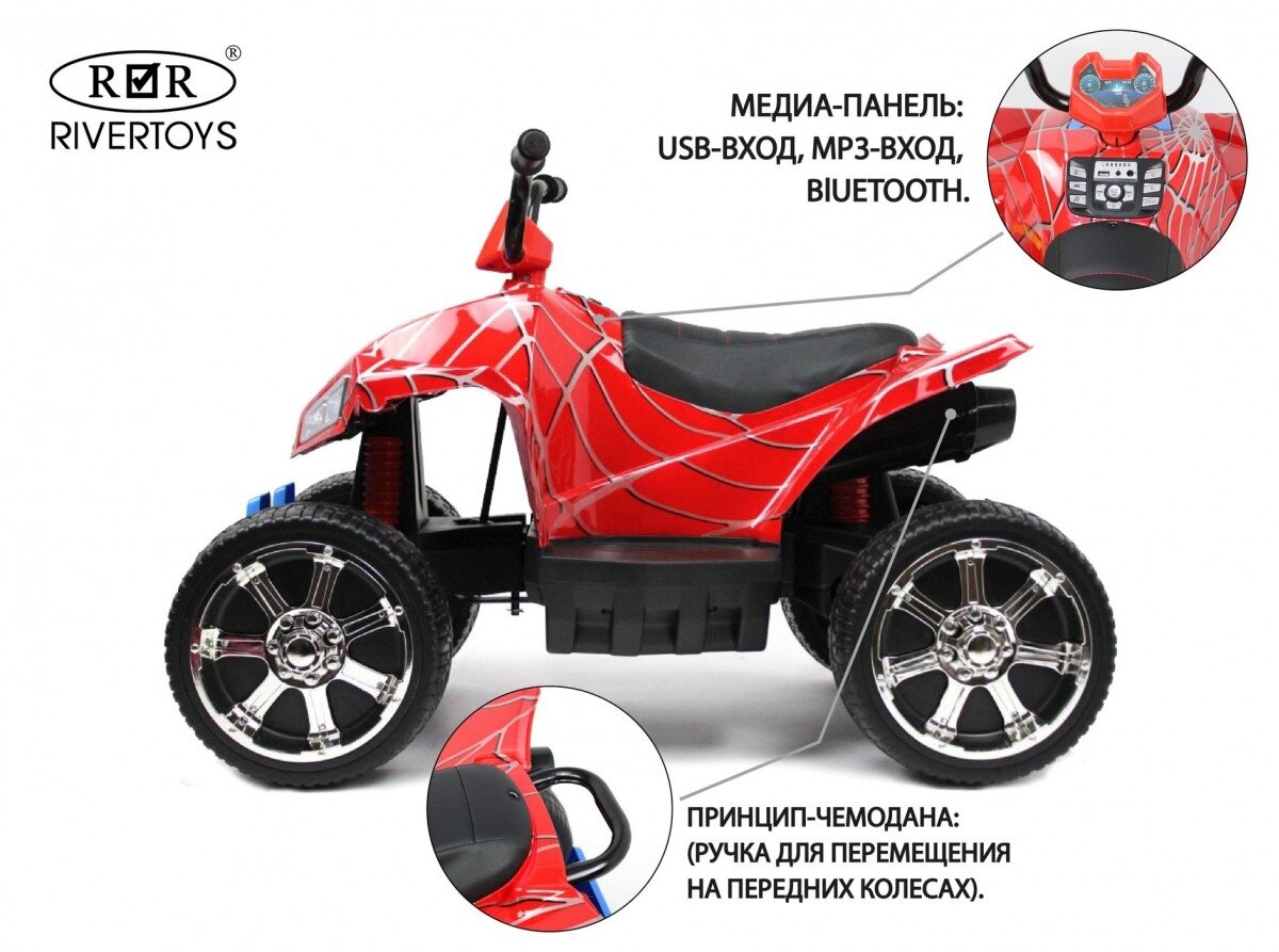 RiverToys Детский электроквадроцикл T555TT красный паук