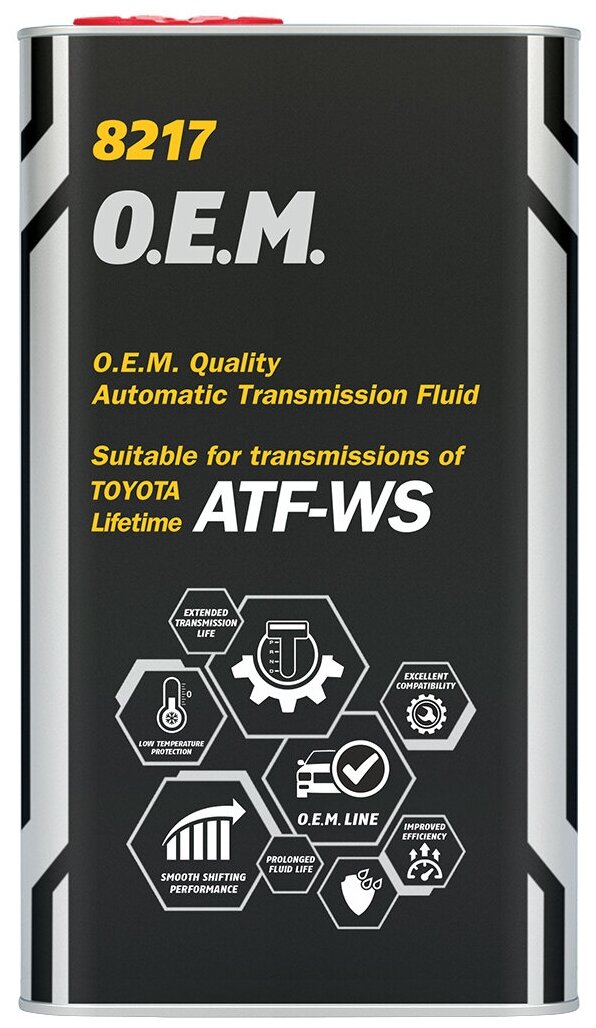 Ниже Вы можете прочитать отзывы на Масло трансмиссионное Mannol O.E.M. 8217 ATF WS, 4 л, ознакомится с подробными характеристиками, посмотреть интересные обзоры и фотографии на Масло трансмиссионное Mannol O.E.M. 8217 ATF WS, 4 л.