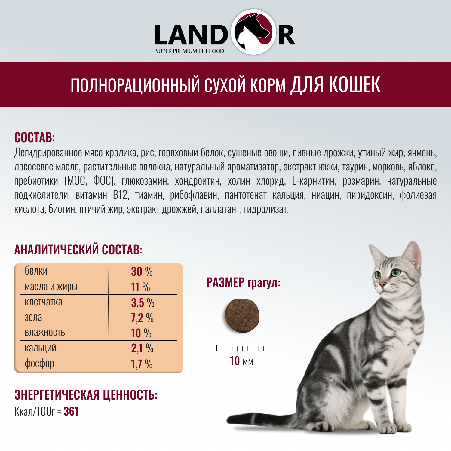 | Особые потребности | гипоаллергенный / для стерилизованных/кастрированных / профилактика избыточного веса |