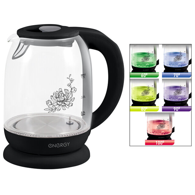 Чайник электрический Energy E-286T 1,7 л, стекло, пластик, черный