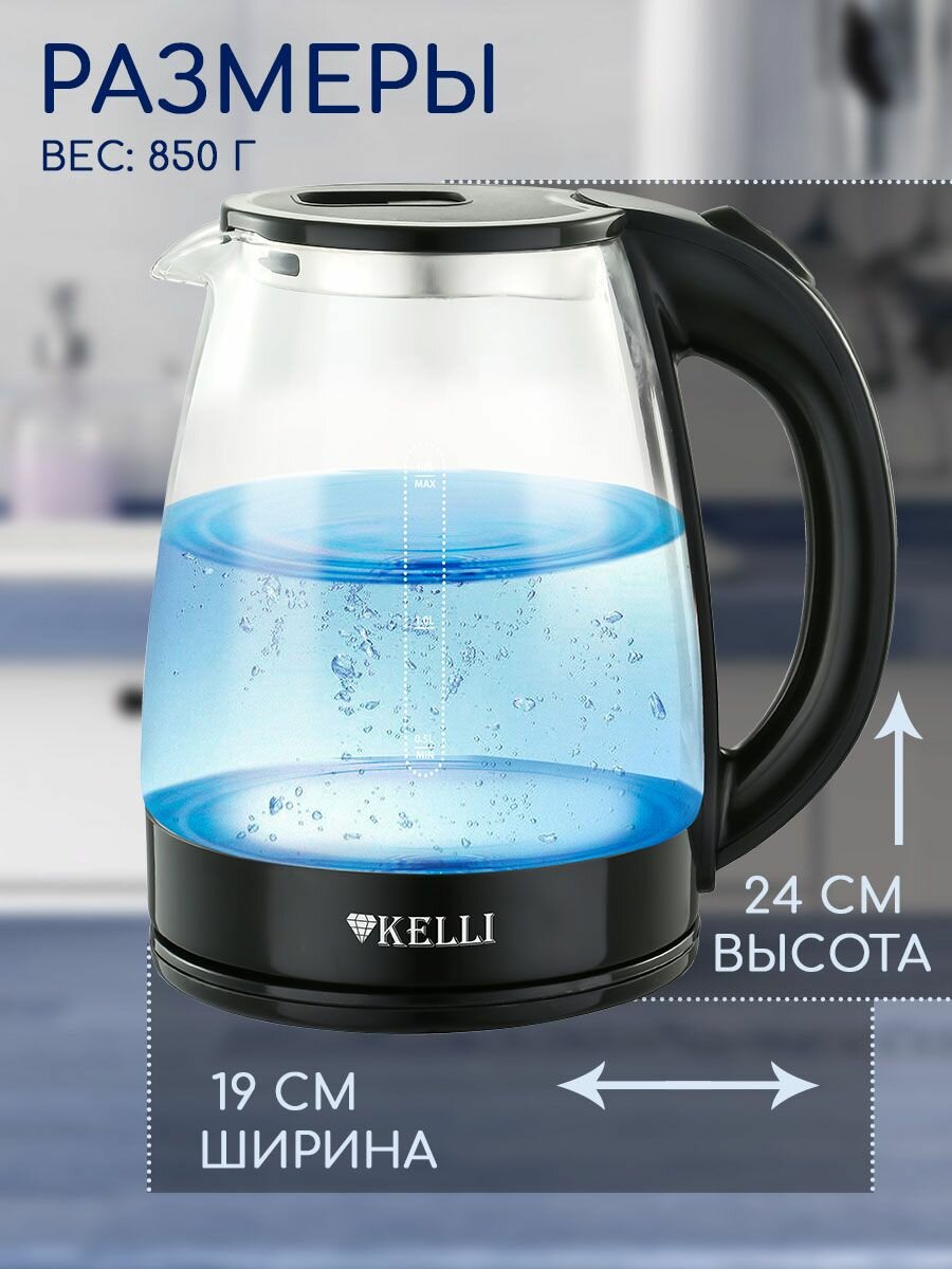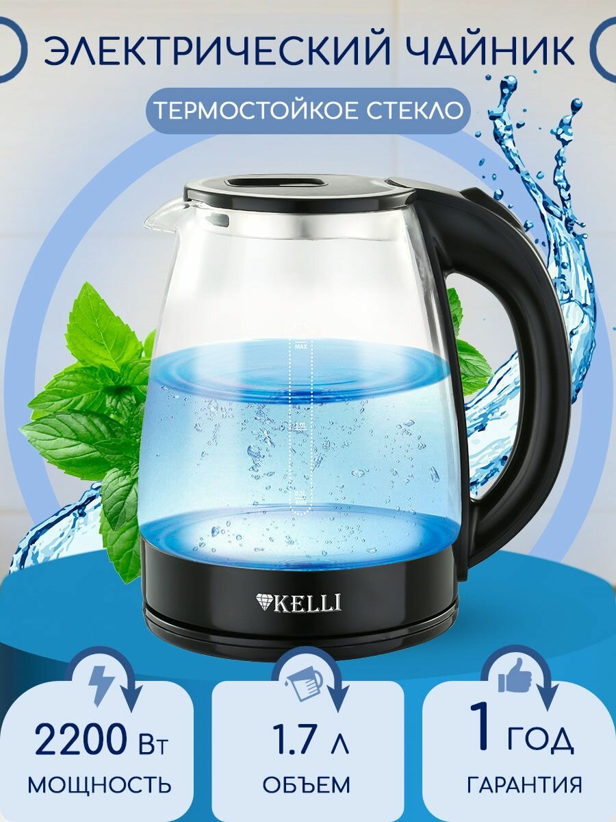 Чайник электрический KELLI KL-1368 1,8 л, 2200 Вт, стекло/черный