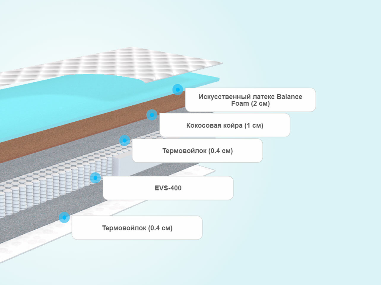 | Наполнитель | комбинированный (пена Balance foam CERTIPUR + термовойлок + кокосовая койра) |
