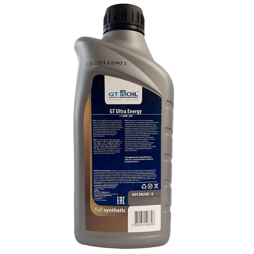 Масло моторное gt oil gt ultra energy 0w-20 синтетическое 4 л 8809059408902