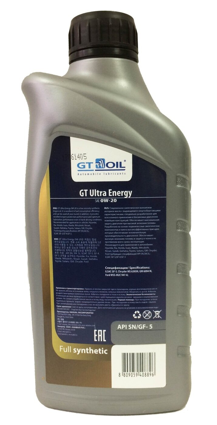 масло моторное gt oil gt ultra energy 0w-20 синтетическое 1 л 8809059408896
