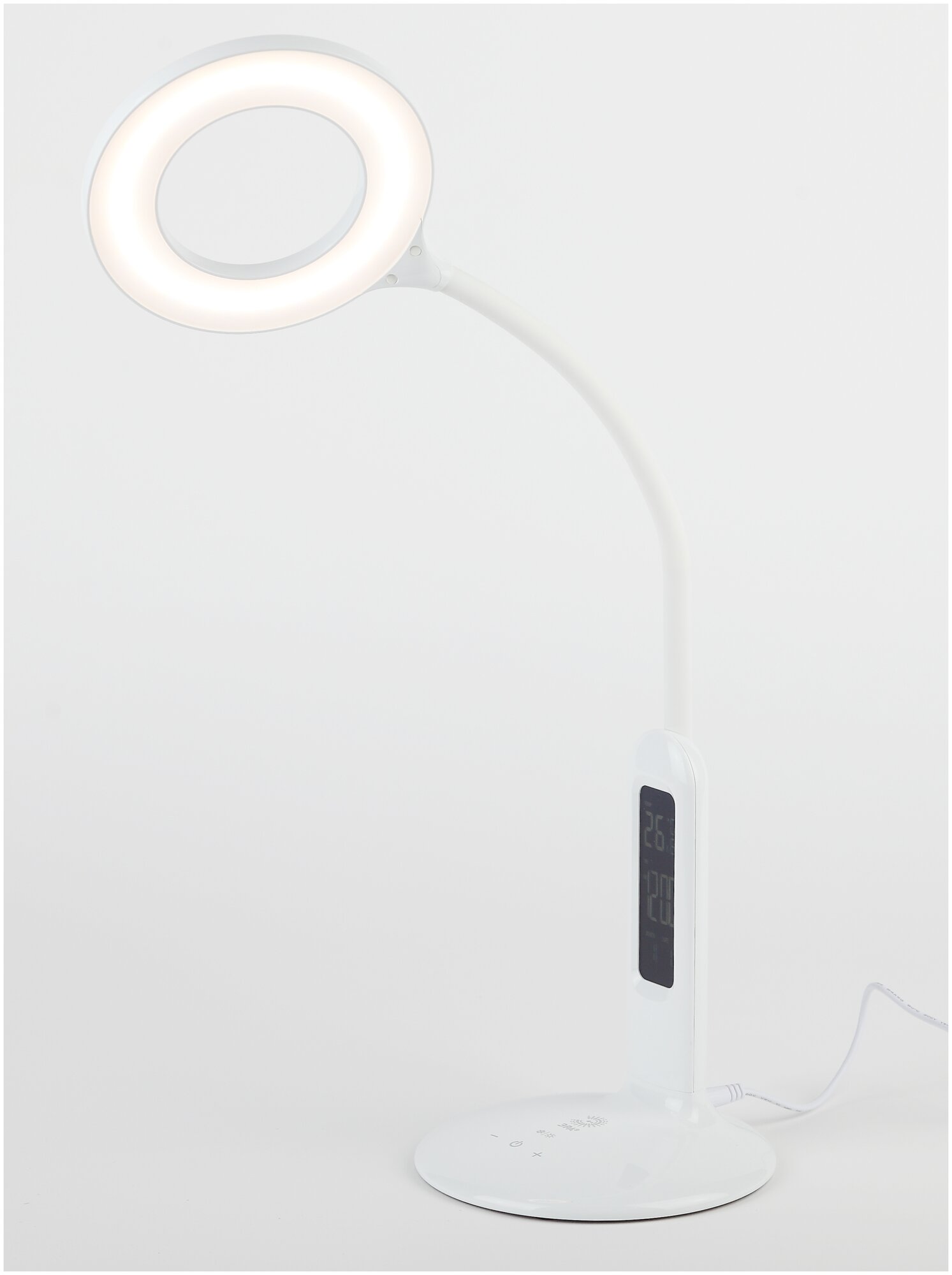 Офисная настольная лампа светодиодная с диммером и выключателем термометром будильником и часами NLED-476-10W-W (ЭРА)