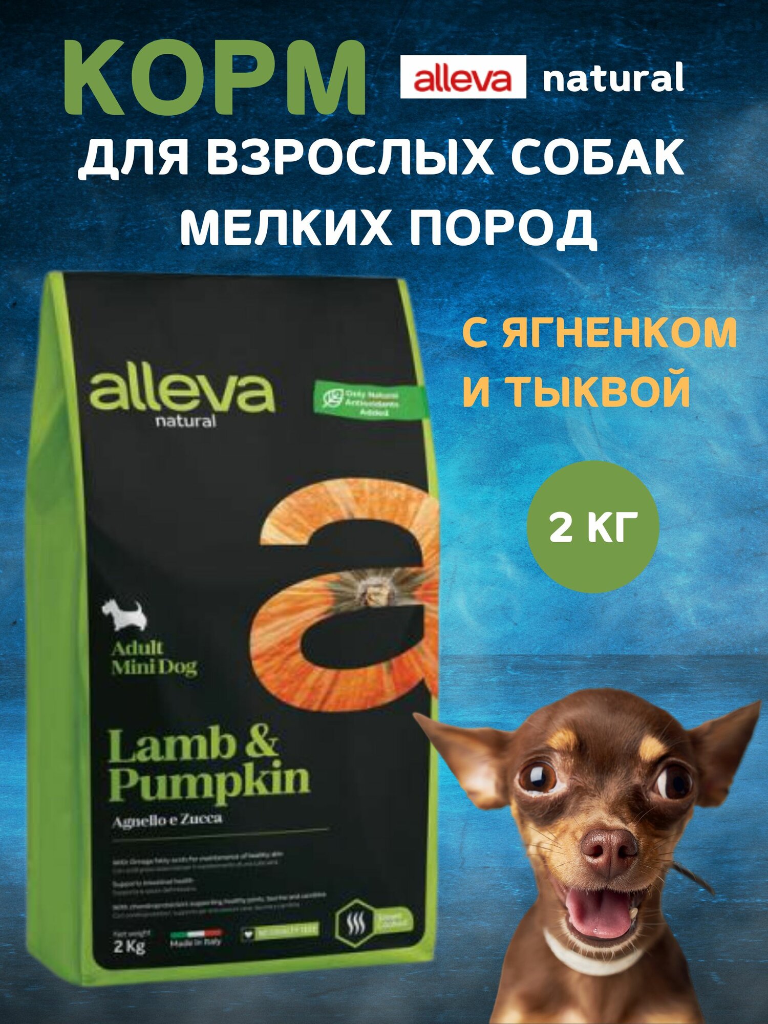 ALLEVA NATURAL DOG для собак Adult Lamb Pumpkin Mini взрослых с ягненком и тыквой 2кг 2110