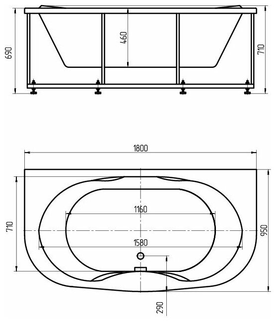 | Дополнительная информация | в комплекте: ванна, вклеенный каркас, фронтальный экран, слив-перелив |