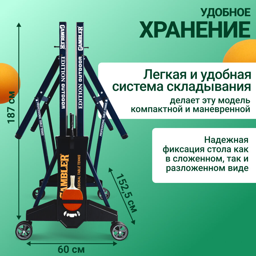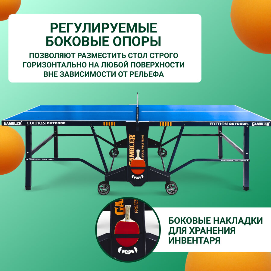 СохранитьСтол теннисный GAMBLER Edition Outdoor BLUE профессиональный, всепогодный, с встроенной сеткой интересное: