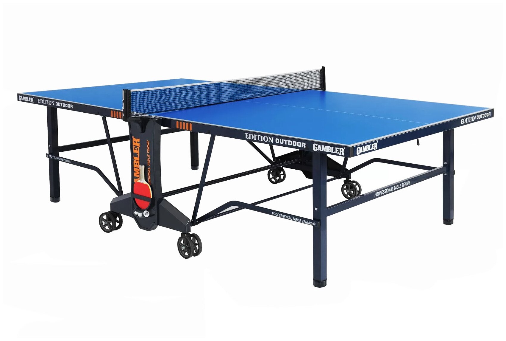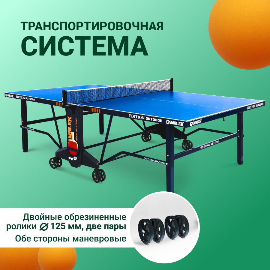Купить Стол теннисный GAMBLER Edition Outdoor BLUE профессиональный, всепогодный, с встроенной сеткой