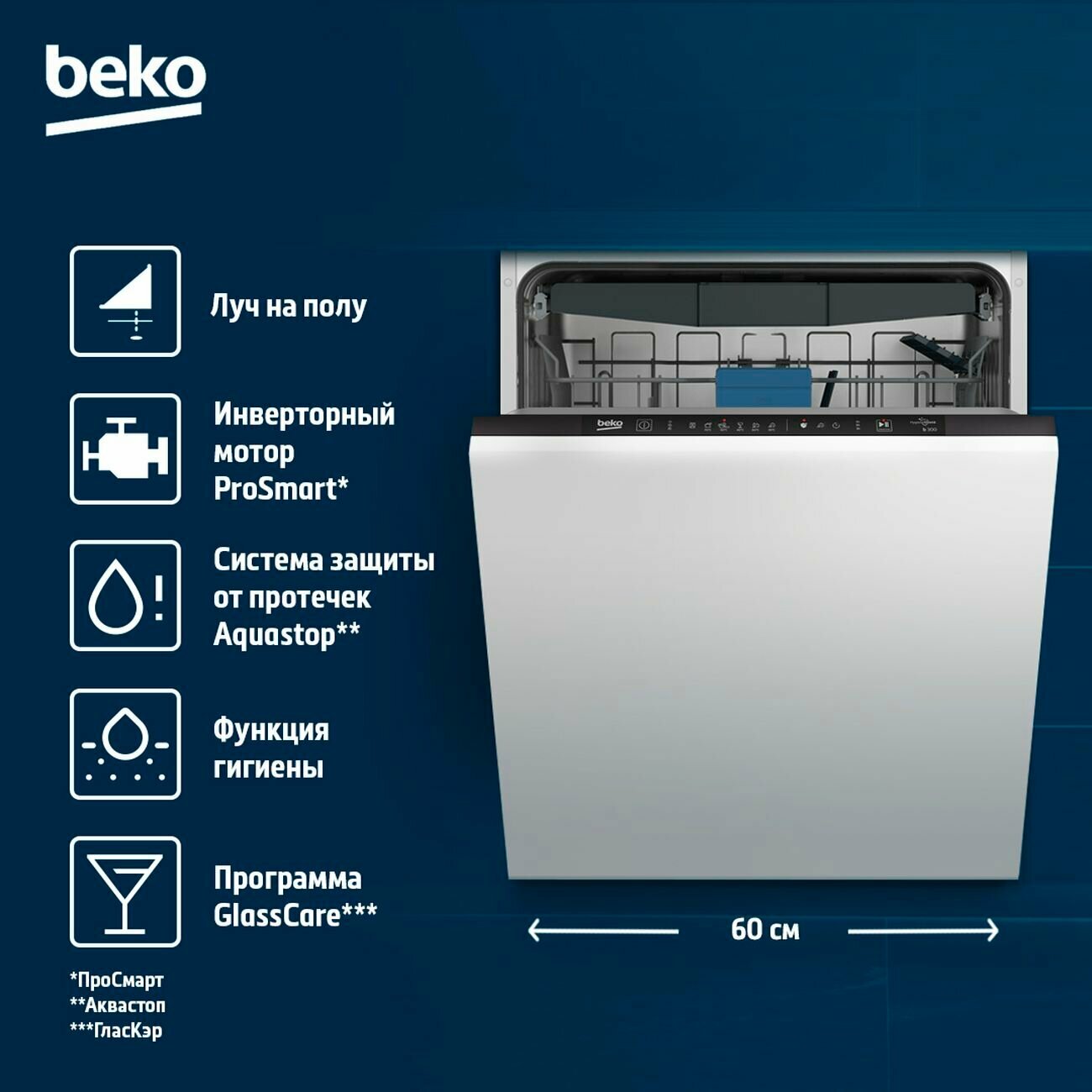 Встраиваемая посудомоечная машина Beko BDIN16520, полноразмерная, ширина 59.8см, полновстраиваемая, загрузка 15 комплектов