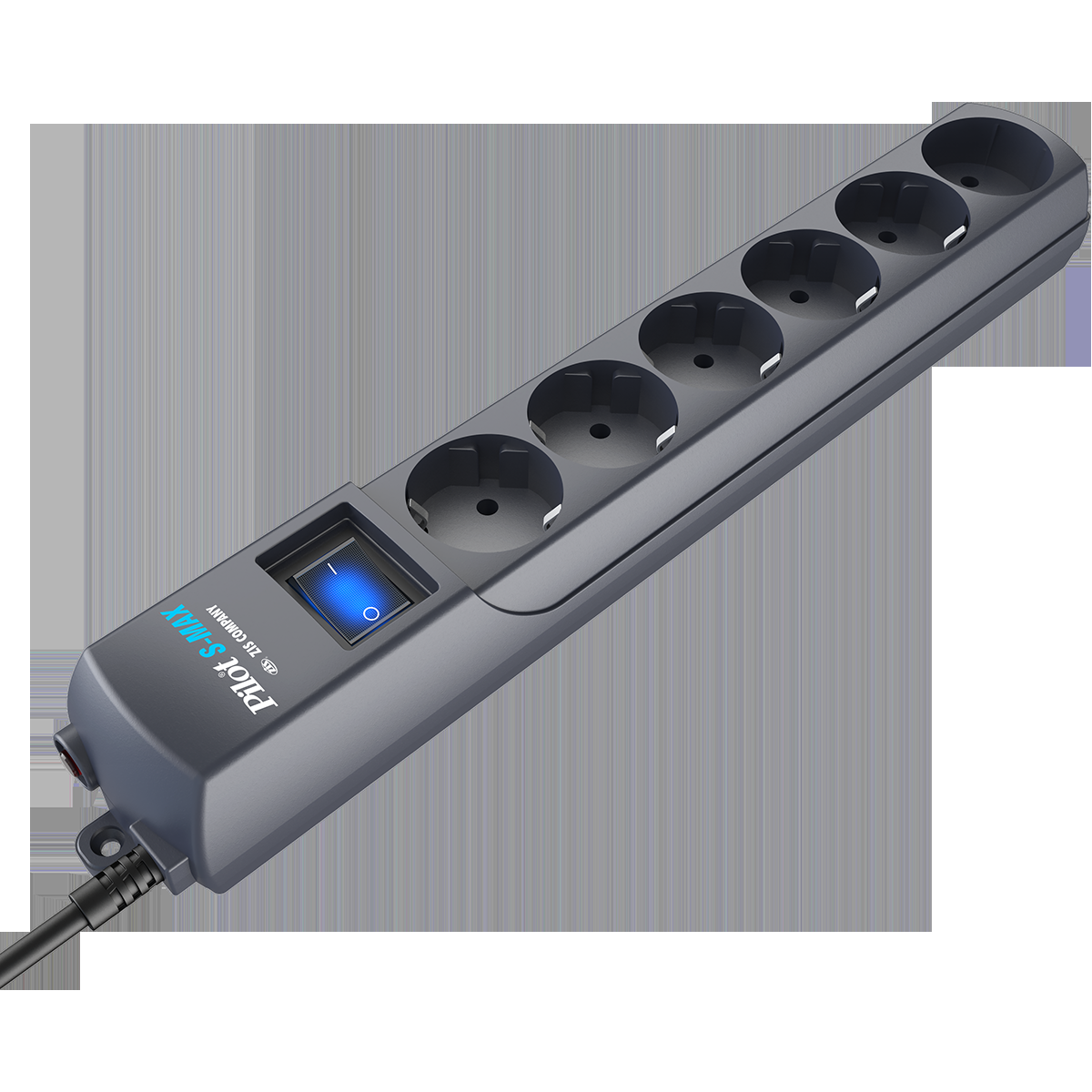 Сетевой фильтр Pilot S Max (5 евро + 1GP), 15А/3.5кВа, автомат, 7 м, графит ZIS Pilot S-Max (7 м, 6 розеток) (Pilot S-Max 7M)