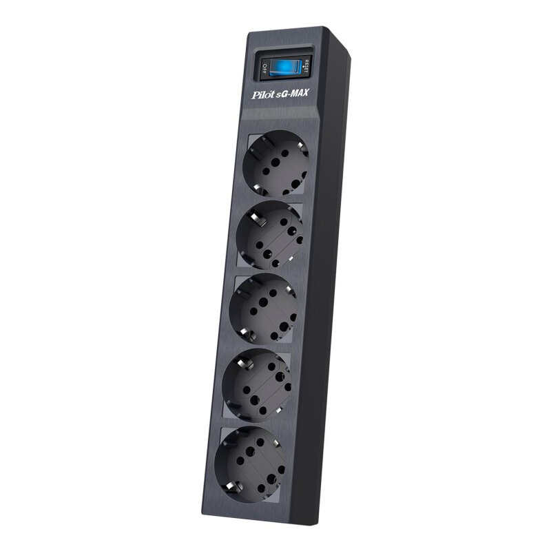 ZIS Pilot sG-Max Сетевой фильтр Pilot SG 5 розеток (GP с заземлением), 15А/3.3кВа, автомат, 10 м, графит Pilot sG-Max 10M