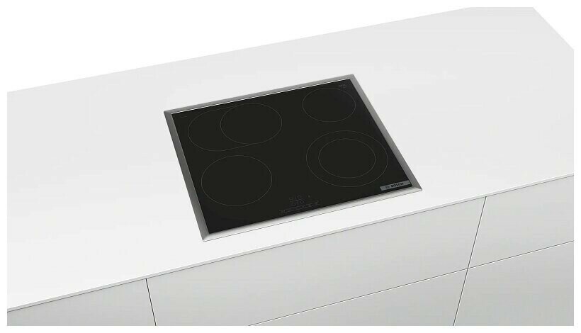 Электрическая варочная панель Bosch PKN645BB2E, цвет панели черный, цвет рамки серебристый