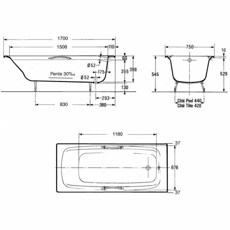 Ванна чугунная Jacob Delafon Diapason E2937-S-00 без антискольжения