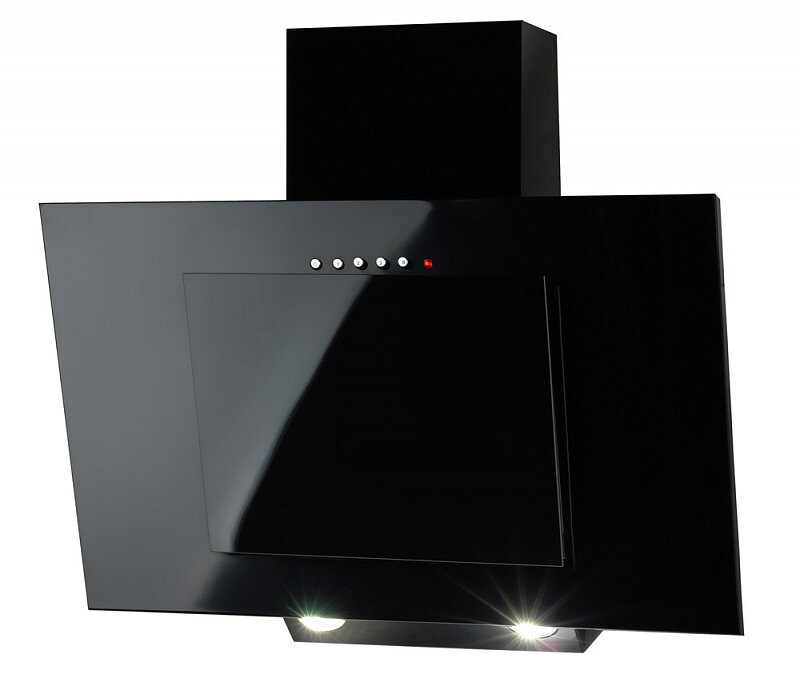 Вытяжка кухонная наклонная акпо WK-4 Nero eco черная металл стекло 3 скорости светодиодное освещение, механическое управление, жировой фильтр