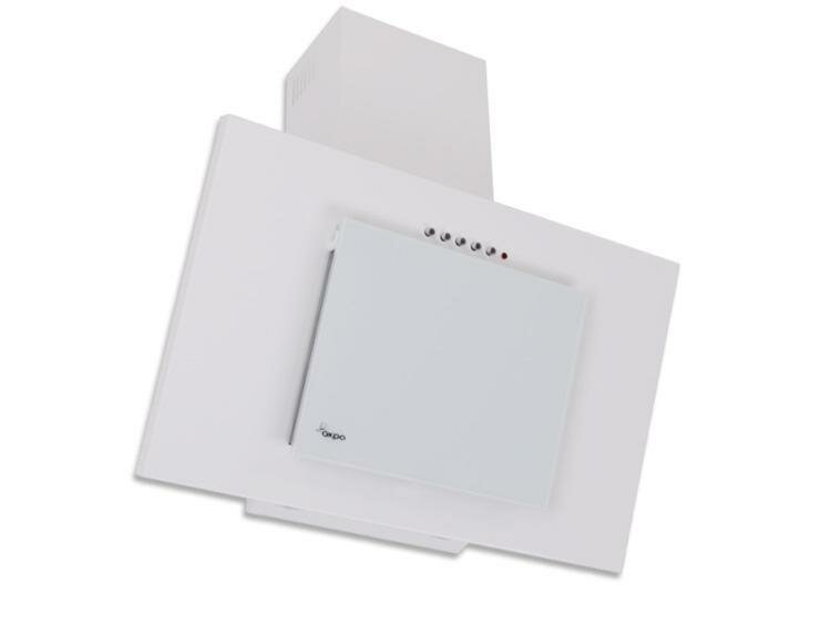 Вытяжка кухонная наклонная акпо WK-4 Nero eco белая металл стекло 3 скорости светодиодное освещение, механическое управление, жировой фильтр