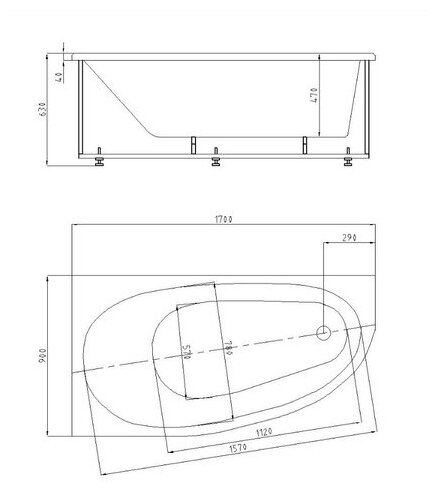 Акриловая ванна Aquatek Дива 170х90 DIV170-0000003 правая, без гидромассажа, без фронтального экрана, без каркаса