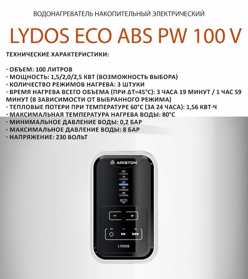Водонагреватель накопительный электрический ARISTON LYDOS ECO ABS PW 100V