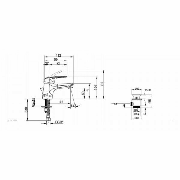 | Длина излива | 107 мм |