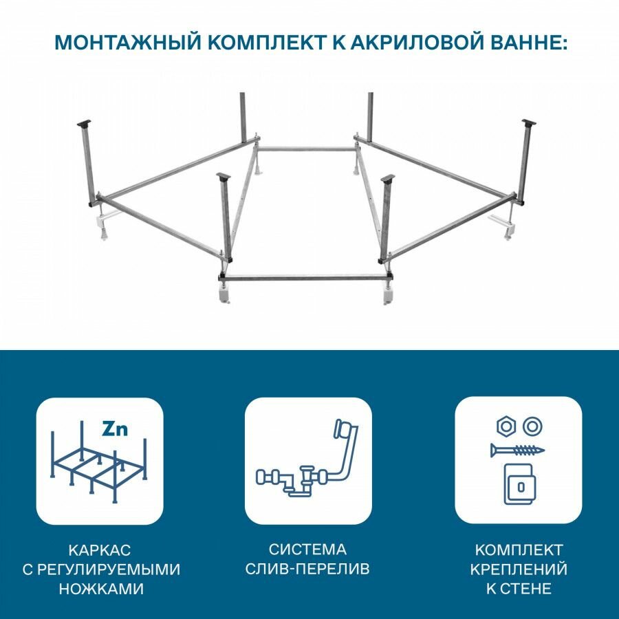 Акриловая ванна Santek Канны 150х150см, арт. 1WH111983, угловая симметричная